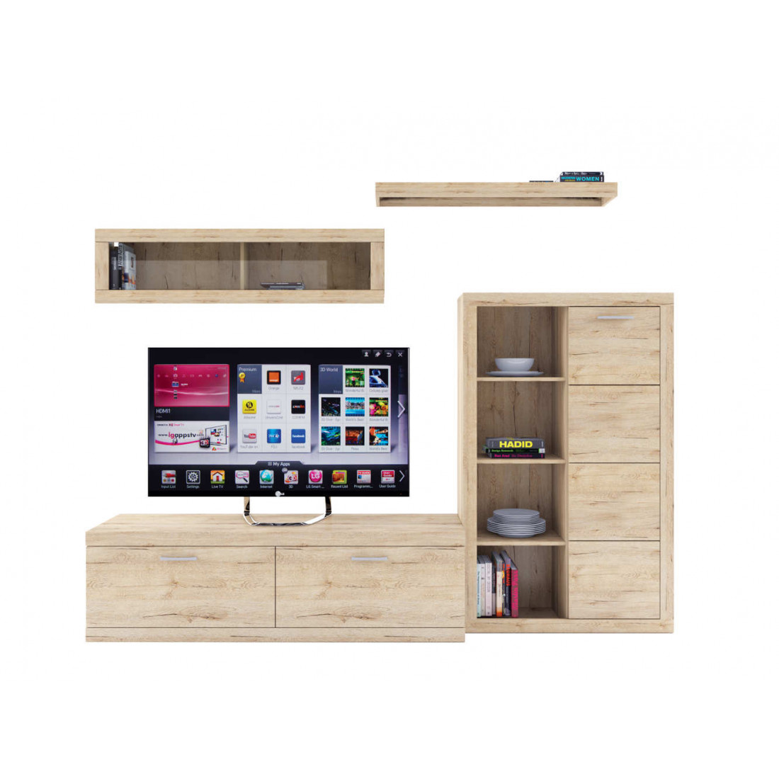 2. 4 варианта тумб RTV с выдвижными ящиками на шариковых направляющих. 2 размера надставных полок для RTV-тумб (полка TVB и полка TV), позволяющих установить выше телевизор. Варианты навесных полок, соответствующих по размеру тумбам для телевизора. Тумба RTV 2S2NL имеет глубину 351 мм, что позволяет составить модули, имеющие такую же глубину, в одну линию без выступающих элементов.