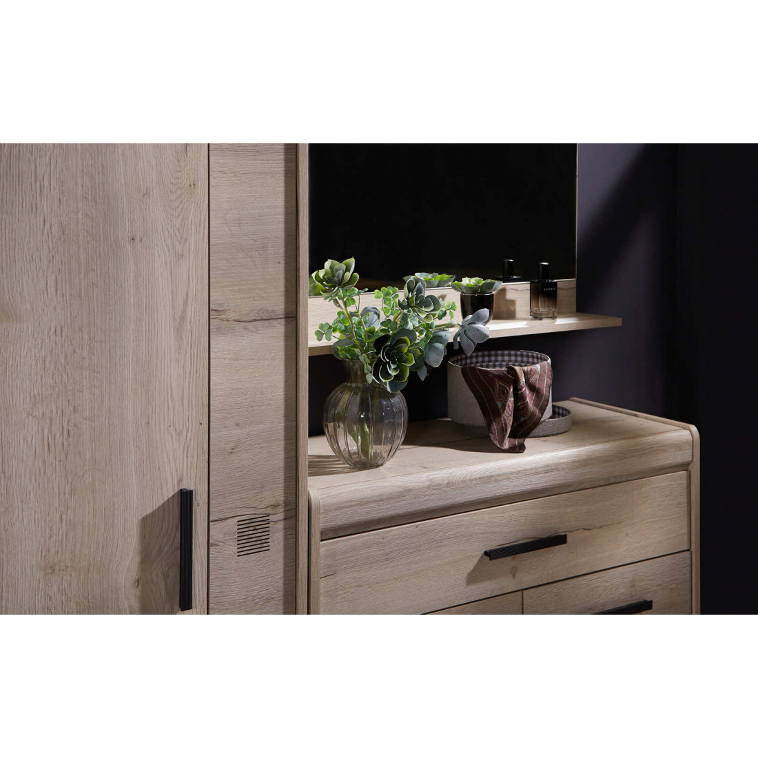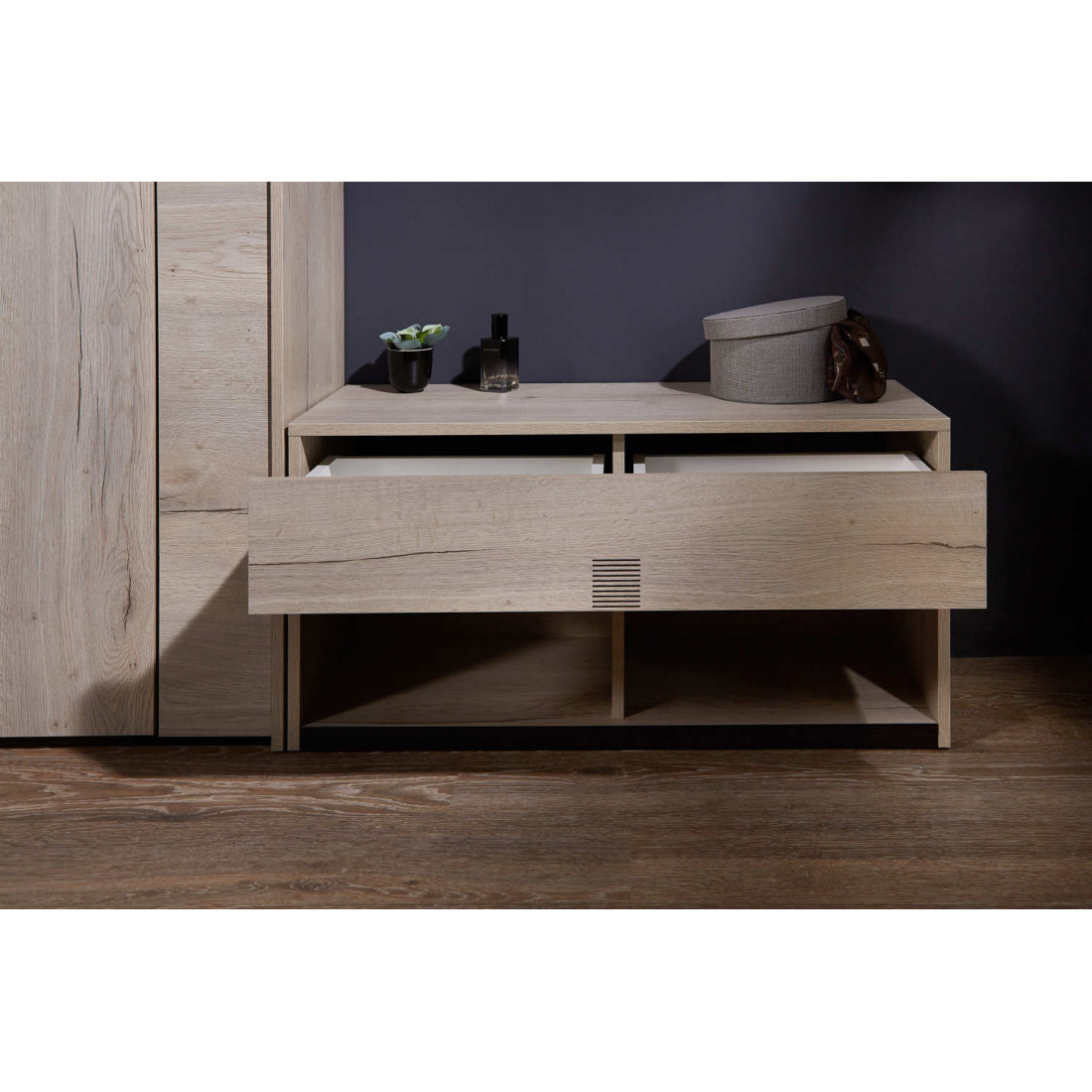 Прихожая «Мале» - обладательница лаконичного и свежего дизайна. Особое внимание привлекают тактильные ощущения от прикосновения к мебели. Декор и структуры, схожие с натуральным деревом по рисунку и шероховатости, придают глубину и естественность. Широкий спектр модулей позволит эргономично использовать Ваше пространство.
